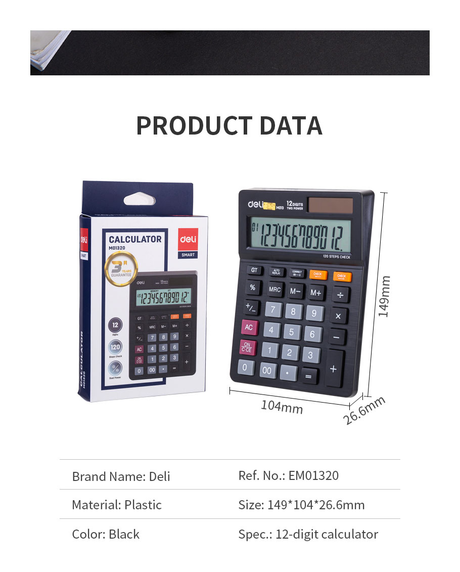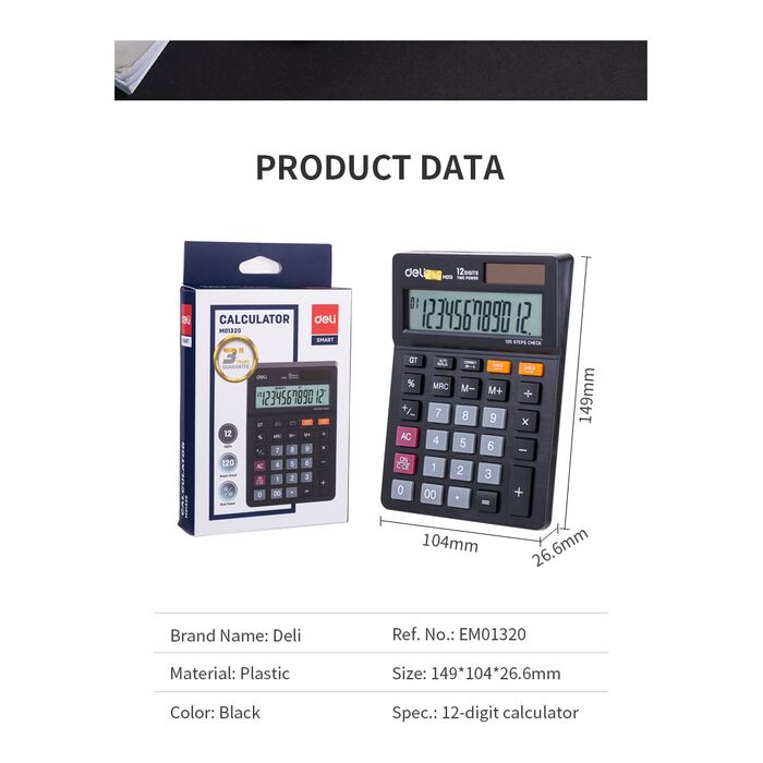 Калькулятор настольный Deli EM01320 черный 12-разр.