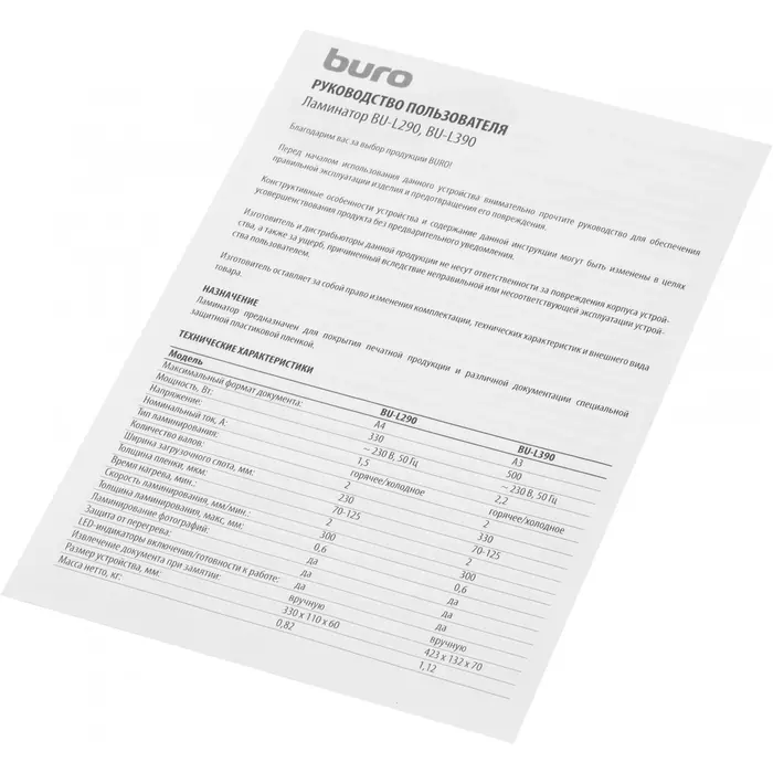 Описание BURO BU-L390