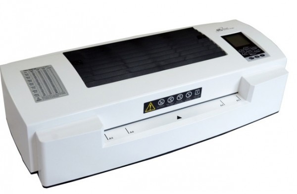 - Дополнительные характеристики: Микропроцессорная система управления, цифровой дисплей, фольгирует отлично, цифровой контроллер температуры Micom, символьный индикатор и звуковой сигнал готовности, толщина ламинирования 1,0 мм, вентиляторы охлаждения, 7-мь предустановленных настроек ламинирования, реверс, автоматический реверс при замятии, переход в режим сохранения энергии через 60 мин простоя, автореверс при недостаточном прогреве, автоотключение после 90 мин простоя, время непрерывной работы до 4-х часов, автоматическая защита от перегрева, мощность 1350Вт