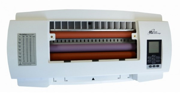 Ламинатор Royal Sovereign HSH-1300 мощностью 1,3 кВт. Скорость ламинирования может достигать 3000 мм/минуту.