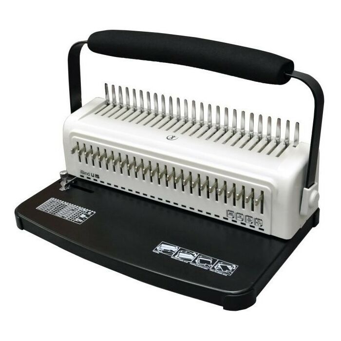 - iBind U15 – мощная переплетная машина на пластиковую пружину, с помощью которой можно переплести до 500 листов бумаги.