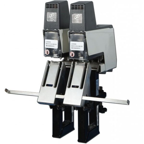 Модель электрического профессионального степлера для типографий, имеющая две степлирующие головки. Скрепляет листы как в тачку (скрепление по краю) так и в накидку (скрепление на сгибе). Для удобства работы оператора он неподвижно крепится на рабочем столе. Расстояние между головками можно регулировать. Удобная напольная педаль облегчает работу оператора. Позволяет плавно регулировать силу удара, для получения наилучшего результата скрепления.