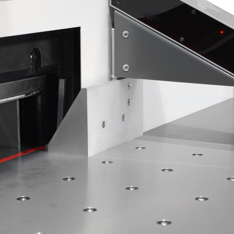 BindTec 7208 предназначена для средних и крупных типографий с большим объемом работ. Эта модель оснащается: расширенным рабочим столом для удобства работы со стопой бумаги; независимыми системами прижима и реза бумаги; подпружиненные шарики размещены не только на рабочем столе спереди, но и в зоне работы затла; привод затла осуществляется по краям двумя червячными валами; полноценный калькулятор не только поможет рассчитать расстояние, но и сразу подвинет затл на это расстояние.