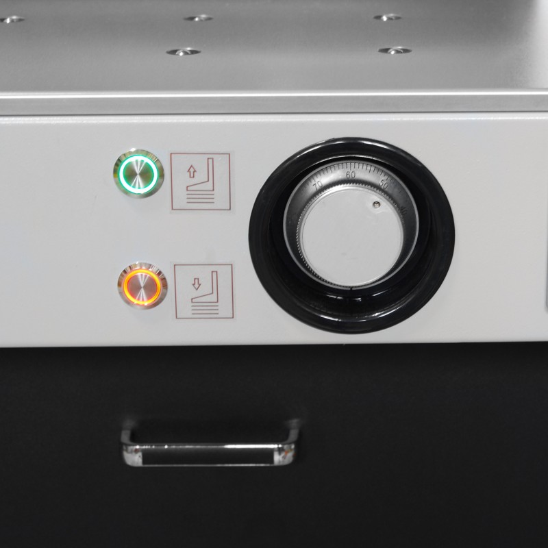 Микропроцессорная система, которая включает в себя полноцветный LCD дисплей, позволяет легко программировать гильотину на разные размеры реза. Педаль предварительного прижима бумаги позволит точно позиционировать стопу на рабочем столе и произвести рез в том месте, где это необходимо. Эта гильотина имеет все необходимые современные системы блокировки для защиты рук оператора. Резак поставляется в собранном виде с собранной тумбочкой. Тумбочку разобрать невозможно.