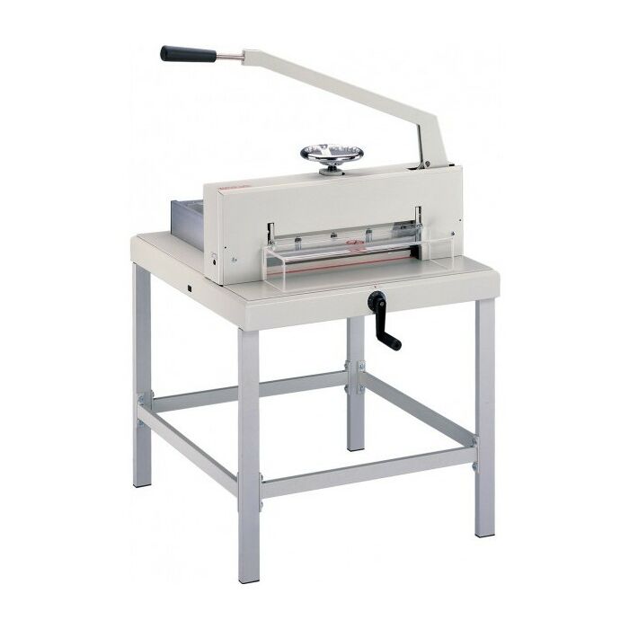 Профессиональная ручная модель - отличное решение для копи-центров и типографий с большим объемом работы. Применяется для резки практически любой бумажной продукции. Винтовой прижим стопы бумаги удобен в работе, долговечен, и создавая большое давление на стопу, что позволяет сделать качественный рез стопы высотой до 80 мм. Резак обладает самой большой длинной реза, среди всей линейки KW-triO, она составляет 475 мм. Необходимый размер реза выставляется по линейке с высокой точностью с помощью рукоятки перемещения затла, расположенной на передней панели, позволяя добиться точности реза до 0,5 мм. Газовый цилиндр помогает поднять в верхнее положение рычаг привода ножа перед резом. При открытом защитном экране из ударопрочного ABS пластика со специальной системой блокировки ножа, нож удерживается в безопасном верхнем положении.