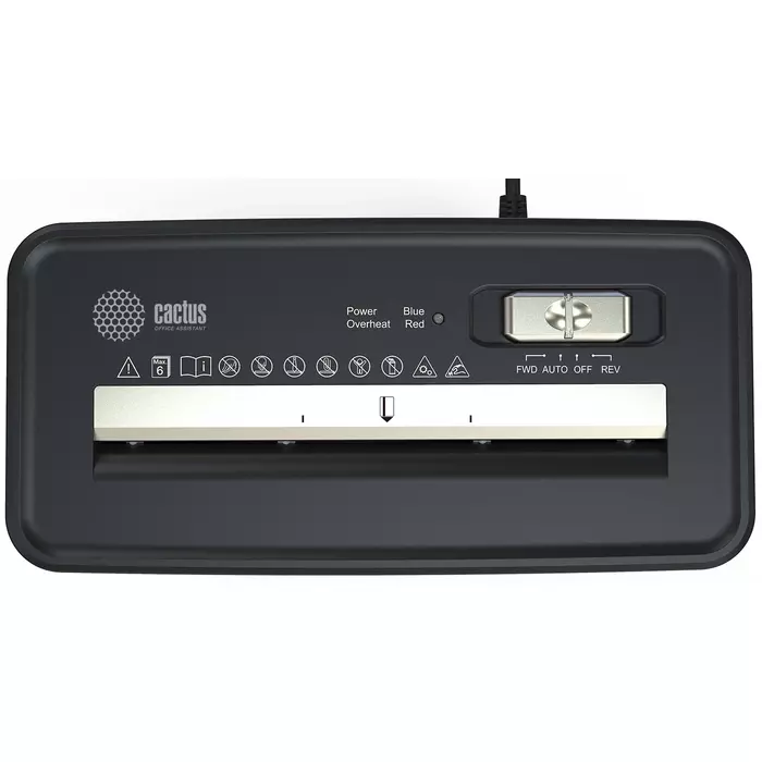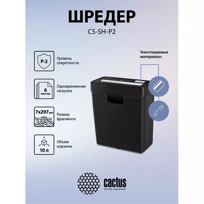 Шредер Cactus CS-SH-P2 черный (секр.Р-2) ленты 6лист. 10лтр. скобы пл.карты