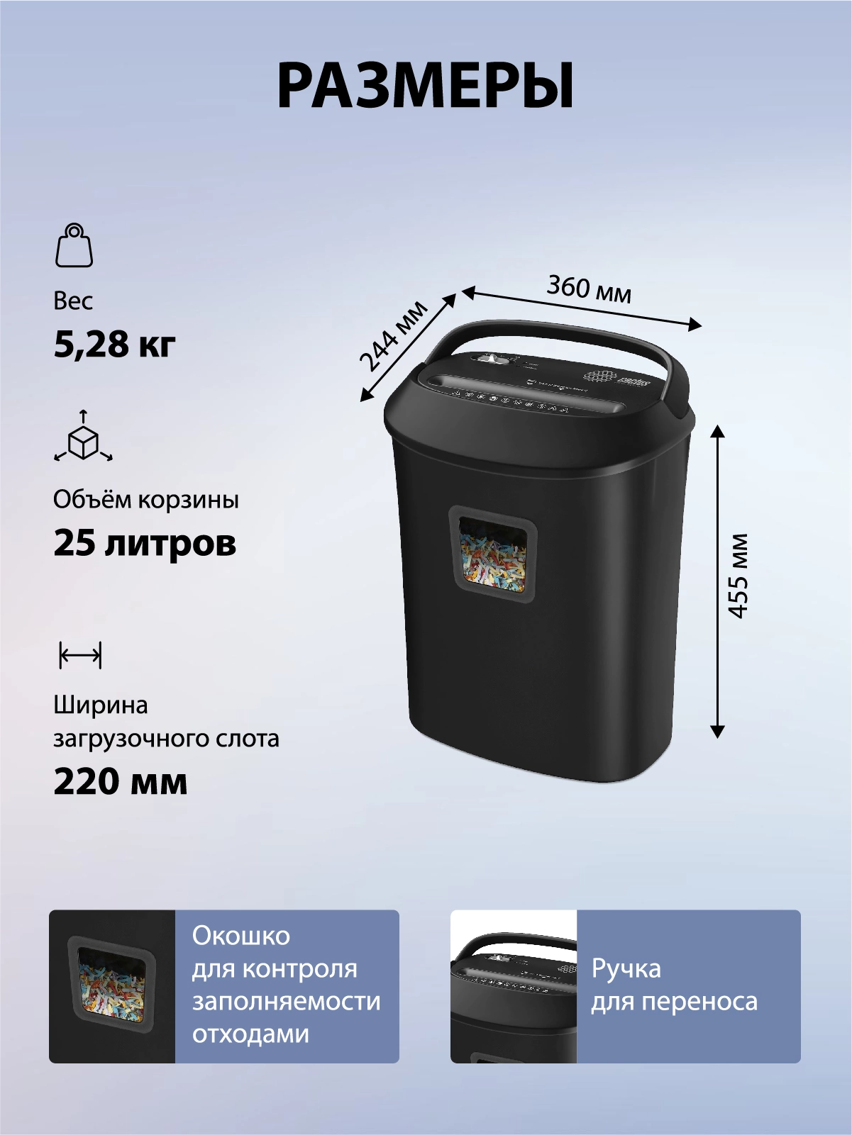 Шредер Cactus CS-SH-P8 черный (секр.P-4) фрагменты 12лист. 25лтр. скрепки скобы пл.карты CD