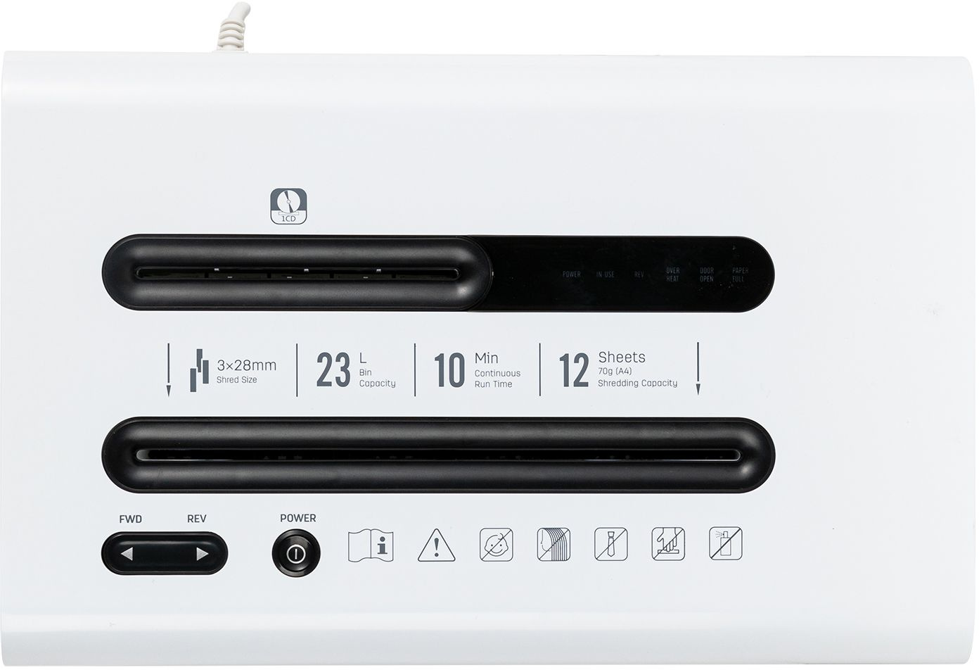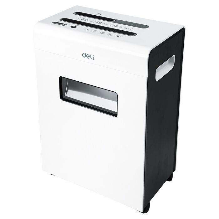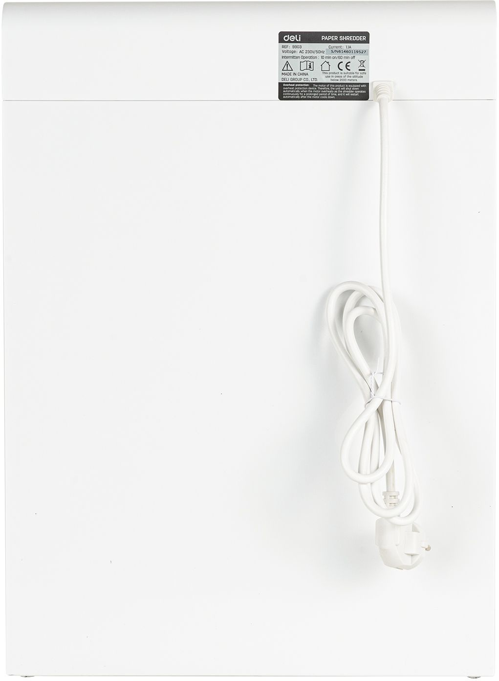 Шредер Deli E9903-EU белый/черный (секр.P-4) фрагменты 12лист. 23лтр. скрепки скобы пл.карты CD
