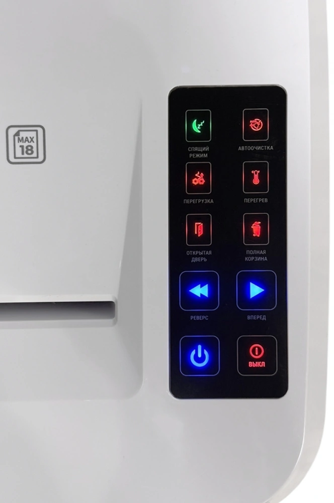 | Особенности устройства | автореверс, автостарт, бесшумный, индикатор перегрева двигателя, индикатор переполненной корзины, корзина, предотвращения затора, энергосберегающий режим |