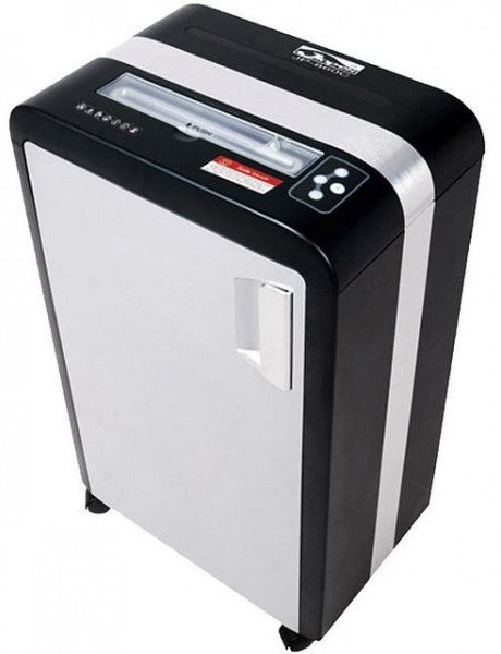 Отлично подходит для работы в офисах небольших и средних компаний. Уничтожает кредитные карты, диски DVD/CD, степлерные скобы, скрепки, есть отдельное отверстие для уничтожения кредитных карт и дисков, закрывающейся шторкой. Металлическая сетчатая корзина рассчитана на использование пакета и имеет объем в 34 литра. Имеет ролики, что позволяет легко передвинуть уничтожитель при необходимости. Строгий стильный дизайн в черно-серебристом цвете.