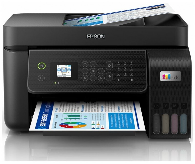 • Epson L5290 – это Принтер-Сканер-Копир-Факс серии «Epson EcoTank». Данное МФУ отвечает всем требованиям современных бизнес-пользователей за счёт широкого функционала, уникального дизайна и усовершенствованной системы заправки