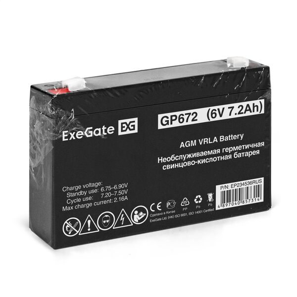 Свинцово-кислотные необслуживаемые аккумуляторы ExeGate серии GP изготовлены по технологии AGM. Обладают низким внутренним сопротивлением и саморазрядом. Оптимизированы для работы в режиме постоянного подзаряда (буферный режим) или в режиме разряд-заряд (циклический режим).