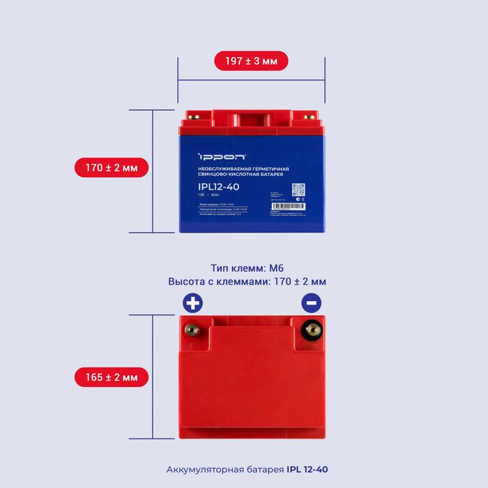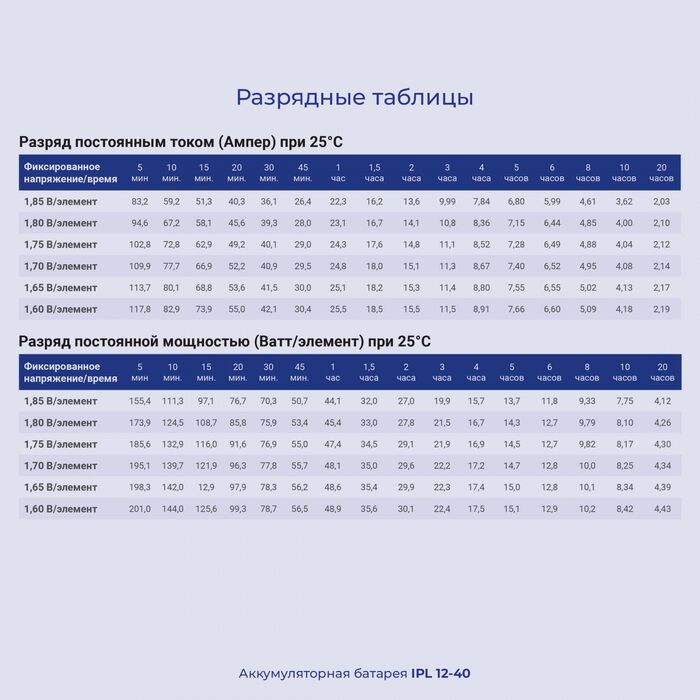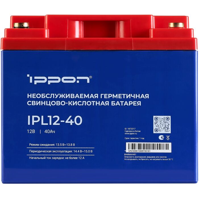 | Саморазрядка | Батареи Ippon разрешается хранить без подзарядки не более 6 месяцев при температуре 25 C. При повышении температуры срок хранения без подзарядки уменьшается |
