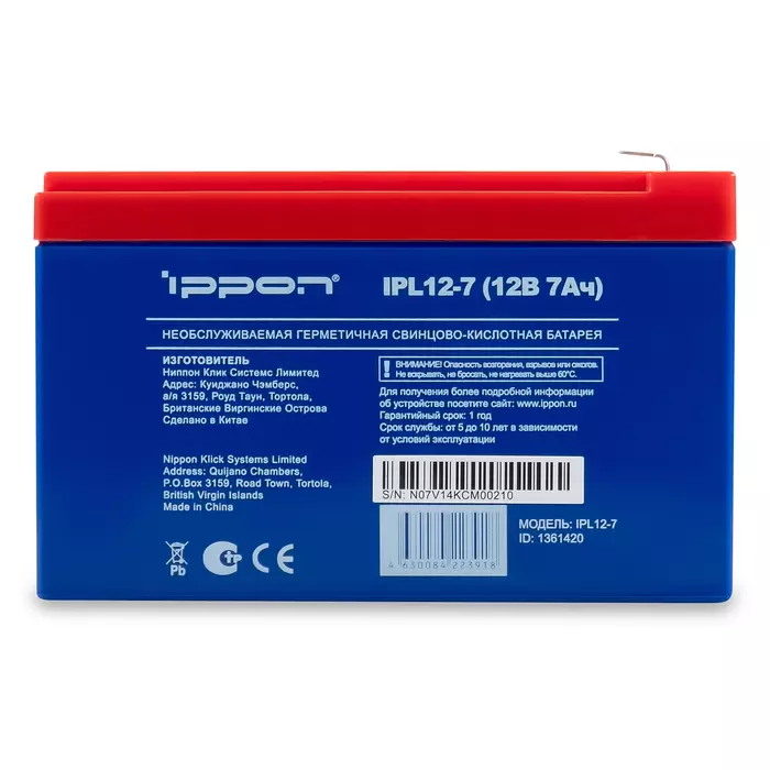 | Саморазрядка | Батареи IPPON разрешается хранить без подзарядки не более 6 месяцев при температуре 25C (77F). При повышении температуры срок хранения без подзарядки уменьшается |