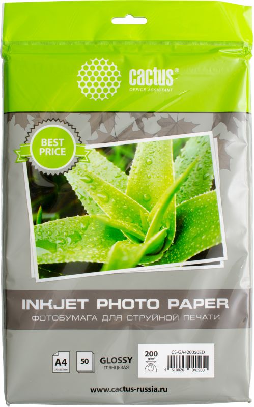 Фотобумага Cactus CS-GA420050ED A4, 200г/м2, 50л, белый глянцевое, для струйной печати