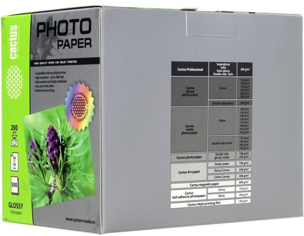 Глянцевая фотобумага Cactus отлично подходит для печати памятных фотографий в фото-рамку или фотоальбом. Обладая приятным глянцевым блеском, она украсит ваши фотографии и презентации. А высококлассное покрытие позволит добиться максимально точной цветопередачи, что будет полезно при печати макетов и web-графики.