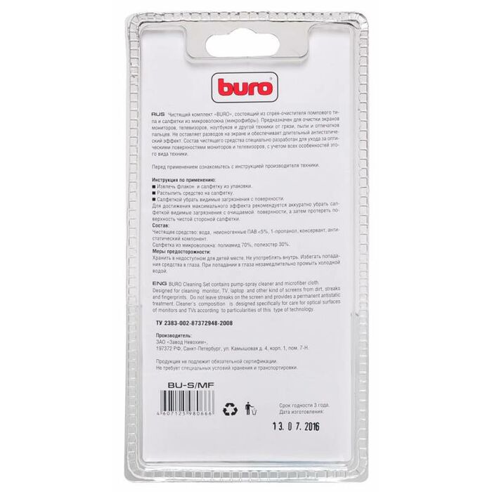 Чистящий набор состоит из спрея-очистителя и салфетки из микроволокна. Предназначен для очистки экранов мониторов, телевизоров, ноутбуков и другой техники от грязи, пыли и отпечатков пальцев. Не оставляет разводов и обеспечивает длительный антистатический эффект.