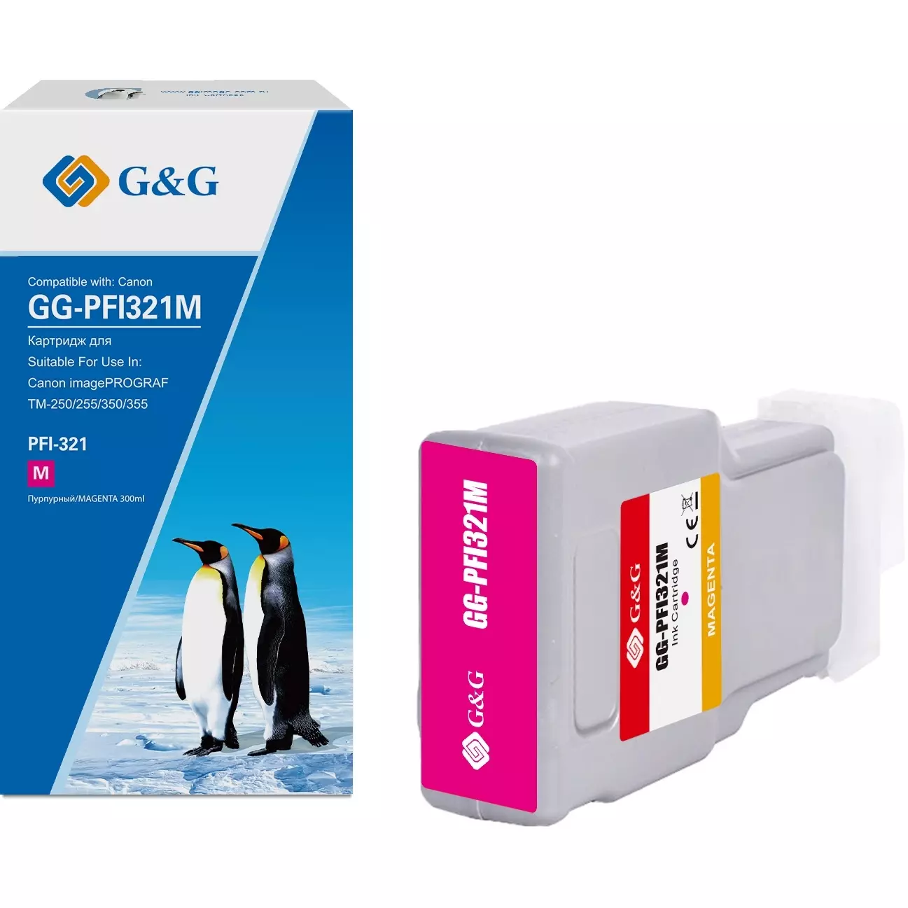 Картридж струйный G&G GG-PFI321M пурпурный (300мл) для Canon imagePROGRAF TM-250/255/350/355