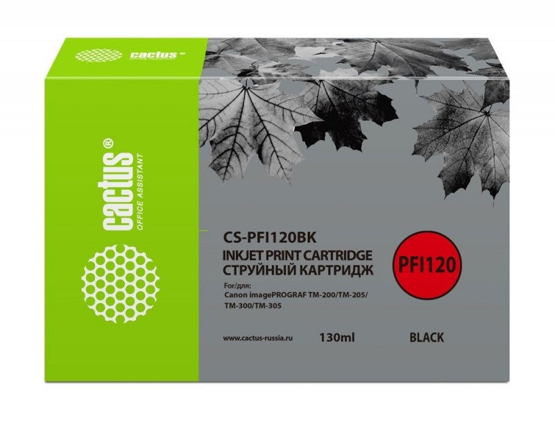 Описание Картридж струйный Cactus CS-PFI120BK черный 130 мл для Canon imagePROGRAF TM-200/TM-205/TM-300/TM-305 вес брутто 0.227 кг