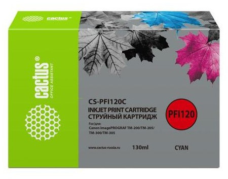 Описание Картридж струйный Cactus CS-PFI120C голубой 130 мл для Canon imagePROGRAF TM-200/TM-205/TM-300/TM-305 вес брутто 0.227 кг