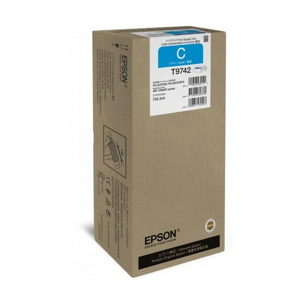 Картридж для струйного принтера Epson T9742 XXL для WorkForce Pro WF-C869R Голубой C13T974200 - это идеальное решение для тех, кто хочет экономить время и деньги при печати документов или фотографий. Этот картридж обеспечивает высокое качество печати благодаря своей большой емкости чернил, что позволяет использовать его для длительной работы без необходимости частой замены.