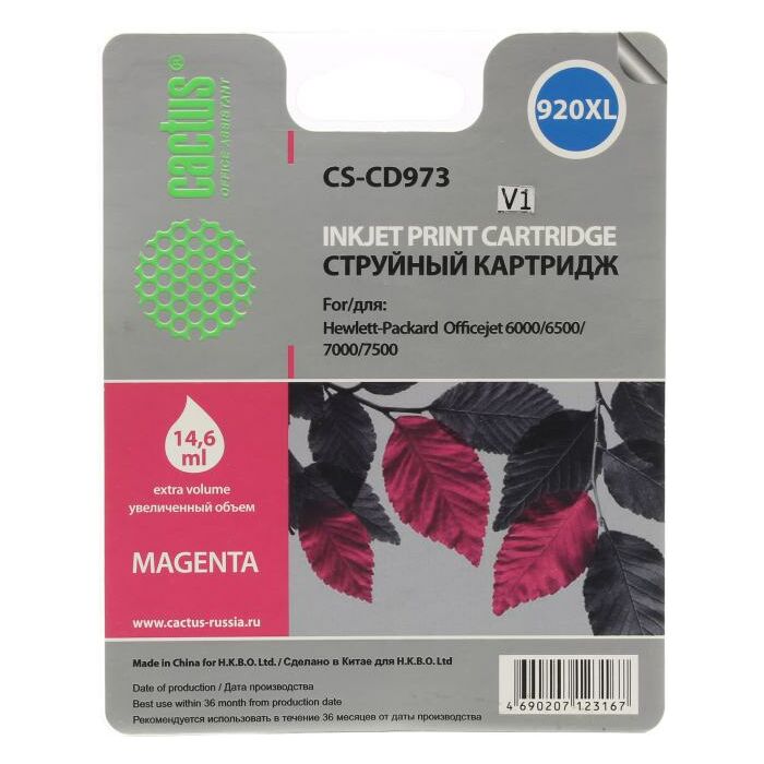 - Цвет красителя картриджа: Пурпурный (Magenta)