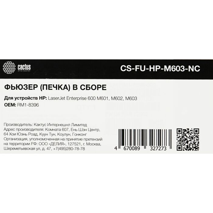 Печка в сборе Cactus CS-FU-HP-M603-NC (RM1-8396) (новая) для HP LJ Ent 600 M601/M602/M603