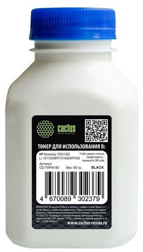 Описание Тонер Cactus CS-THPW-40 черный флакон 40гр. для принтера HP LJ 107/135/MFP137/408/MFP432