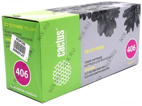 Описание Тонер-картридж Cactus CS-CLT-Y406S желтый (1000стр.) для Samsung CLP-360/365/366, CLX-3300/3305/3306