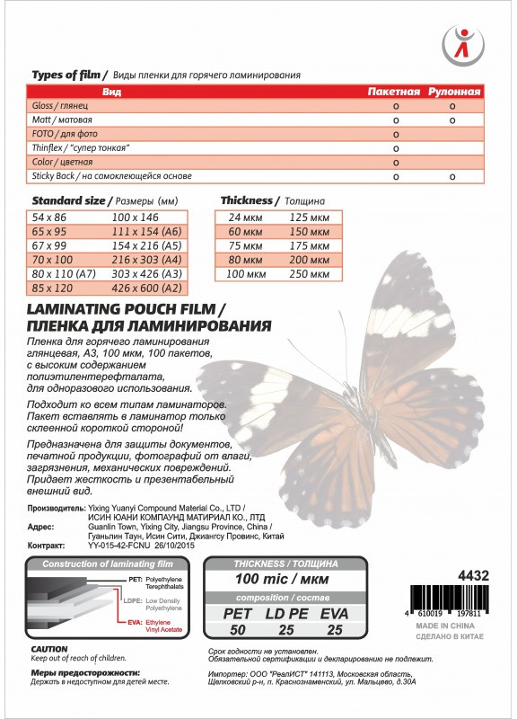 - Толщина, мкм: 100
