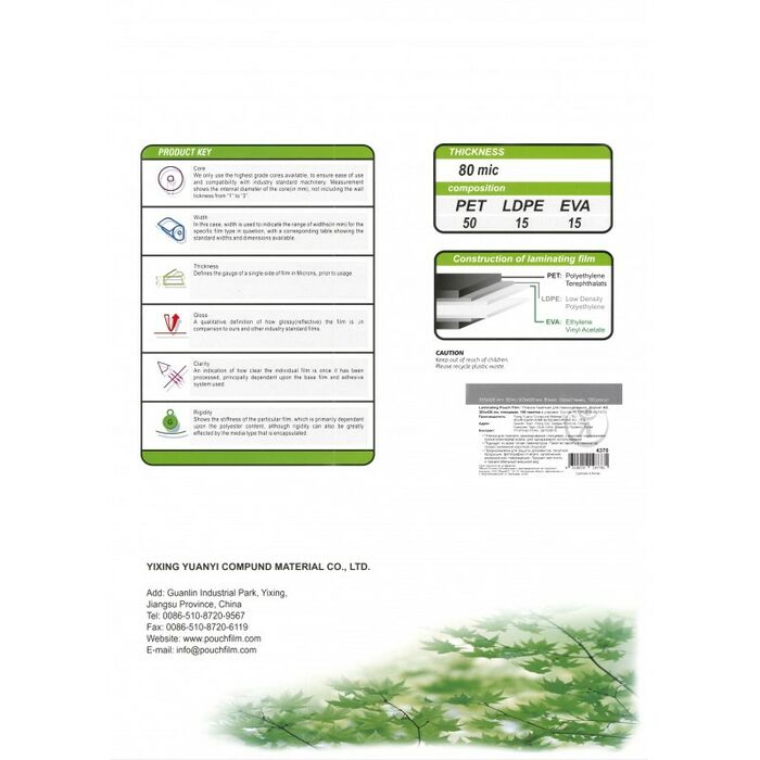 Пленка для ламинирования LF 303х426мм А3, 80мкм, 100 шт