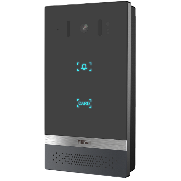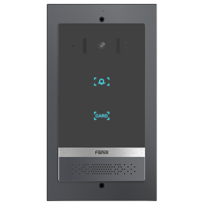 - Fanvil i16V — видеодомофон с поддержкой SIP и PoE в новом элегантном дизайне. Изготовлен из высокопрочного алюминиевого сплава и имеет неразборную конструкцию, что позволяет полностью защитить устройство от воздействия влаги и пыли (IP65) и от механических воздействий (IK10), а также имеет защитный козырек. i16 устойчив к экстремальным температурам от -40 до +70 . Устройство поддерживает технологию шумоподавления: во время звонка интерком эффективно справляется с фоновым шумом, передавая голос в HD-качестве. Дистанционный доступ к интерфейсу облегчает работу системного администратора при настройке сети. Поддержка двух SIP-линий позволяет с помощью одного домофона обеспечивать контроль доступа сразу в две организации в одном здании (или на одном этаже).