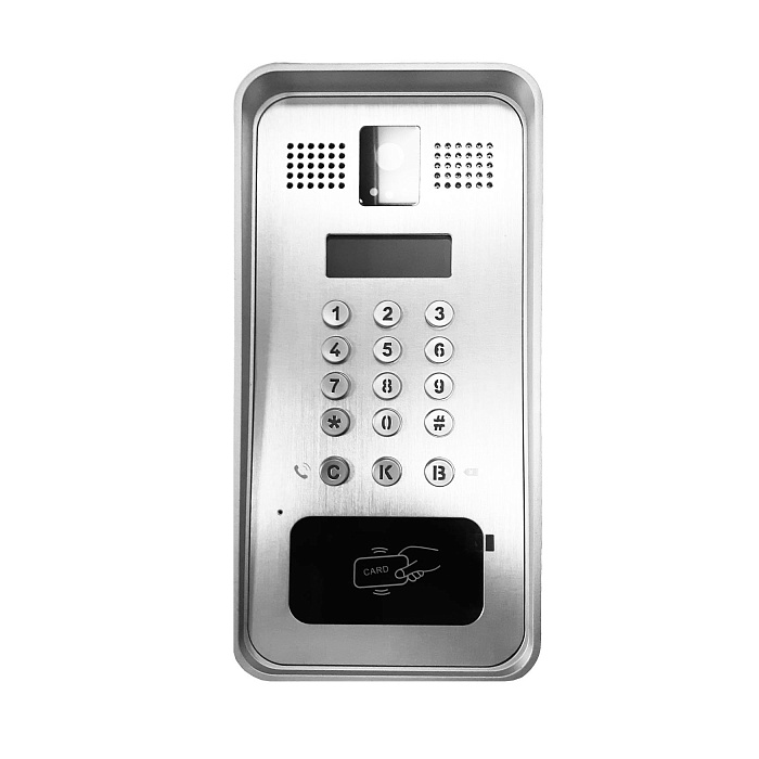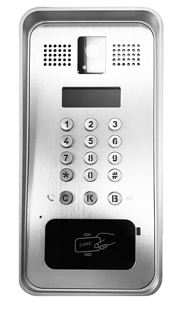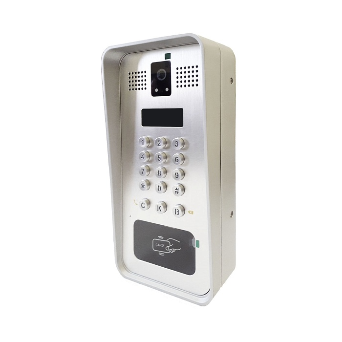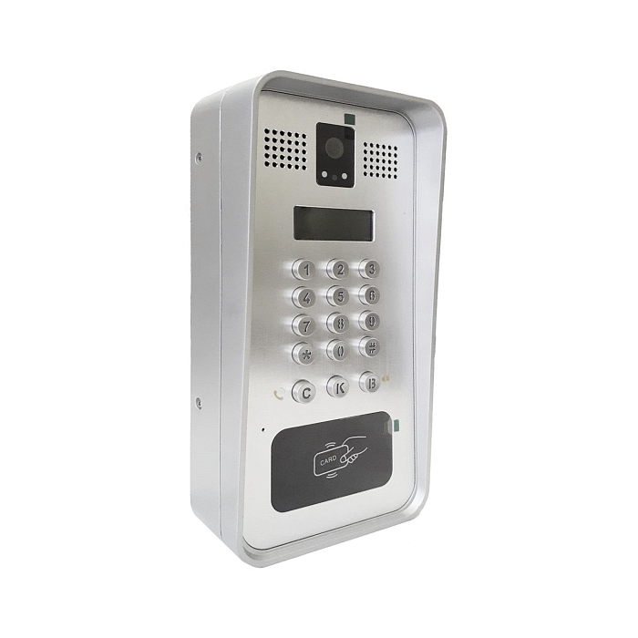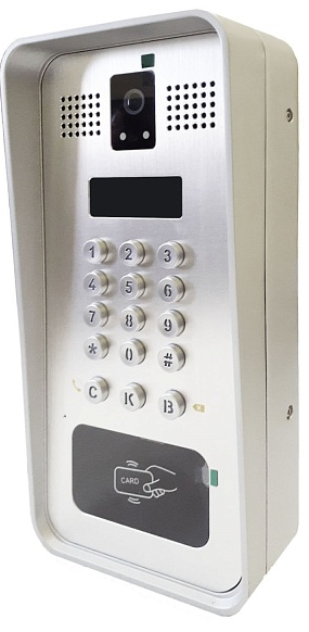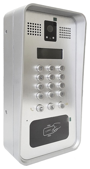 - Встроенная HD-камера с функцией ночного видения поддерживает кодек H.264. RFID-считыватель позволяет организовать доступ в помещение с помощью карт.
