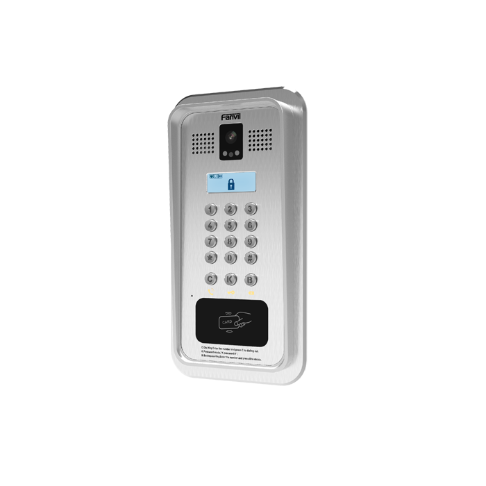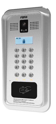 - Fanvil i33V — SIP-видеодомофон с поддержкой SIP и PoE и защитой от воздействия влаги и пыли (IP65) и от механических воздействий (IK10). i33V устойчив к экстремальным температурам от -40 до +70 . Устройство поддерживает технологию шумоподавления: во время звонка интерком эффективно справляется с фоновым шумом, передавая голос в HD-качестве. Дистанционный доступ к интерфейсу облегчает работу системного администратора при настройке сети. Устройство совместимо с большинством популярных IP-АТС и коммуникационных платформ.