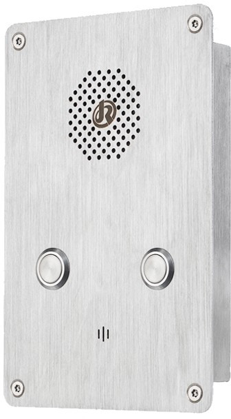 - Всепогодная вандалозащищённая вызывная панель изготовлена из нержавеющей стали и имеет степень защиты от окружающей среды IP55. Рекомендовано для школ, улиц, железнодорожных платформ, автостоянок, больниц и т. д.