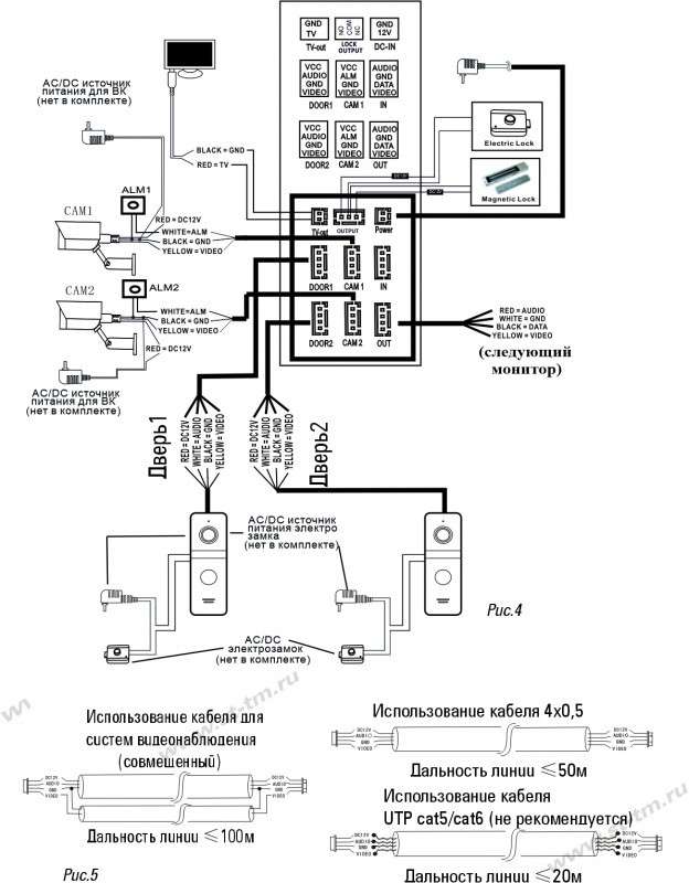 - Возможности подключения: До 2х вызывных панелей, до 2х видеокамер, до 6и мониторов*