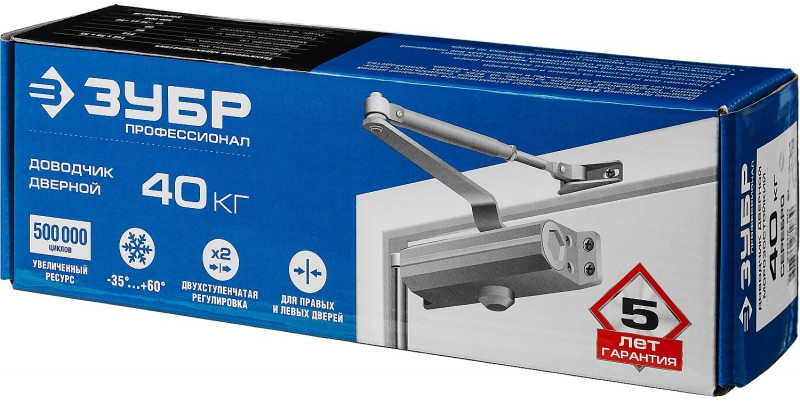 дверной доводчик Зубр 37910-50 до 40 кг, цвет серебро