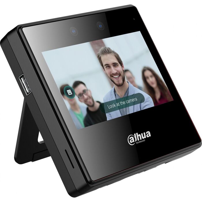 Dahua DHI-ASA3223A-W - Терминал учета рабочего времени с распознаванием лиц и контролем посещаемости c Wi-Fi. 4,3-дюймовый сенсорный ЖК-экран; разрешение 480 × 272. С 2мп двойной широкоугольной камерой и ИК. Разблокировка: лицо и пароль. Поддержка 2000 пользователей, 2000 изображений лиц, 300 000 записей и автономная работа без сети. Расстояние от камеры до лица: 0,3 м – 1,5 м. Точность проверки лица 99,9%; скорость распознавания лиц 0,2 с; определение подлога лица.