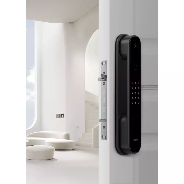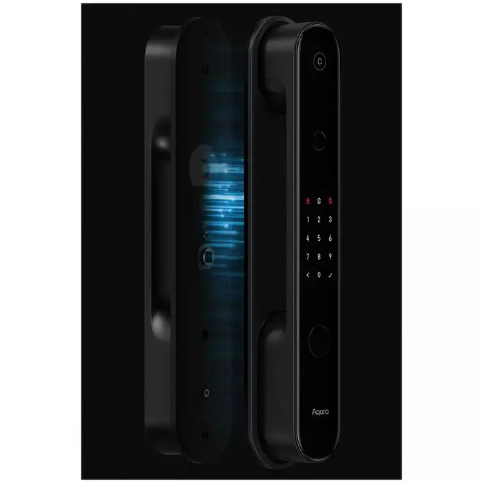 Корпус замка изготовлен из стекла и металла. Встроенный сканер отпечатков пальцев расположен так, что ваш большой палец будет естественно касаться его при открытии двери. Помимо этого, дверной замок оснащен функциями: проверка состояния замка, напоминания о низком заряде батареи.