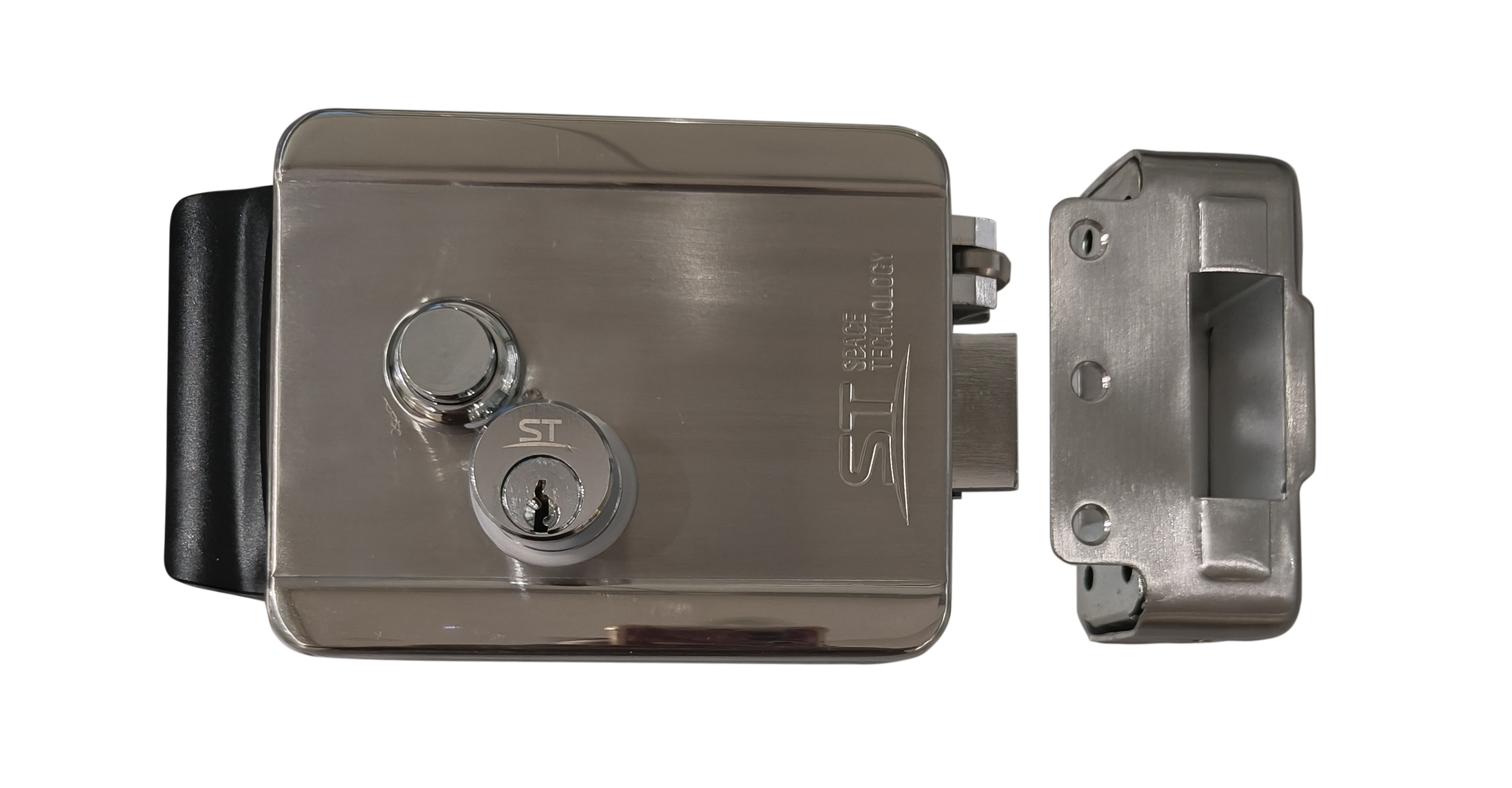 Замок электромеханический, ответная планка, цилиндровый механизм, установочный комплект, резиновая накладка на ручку замка, ключи-5шт.,, паспорт, упаковочная коробка