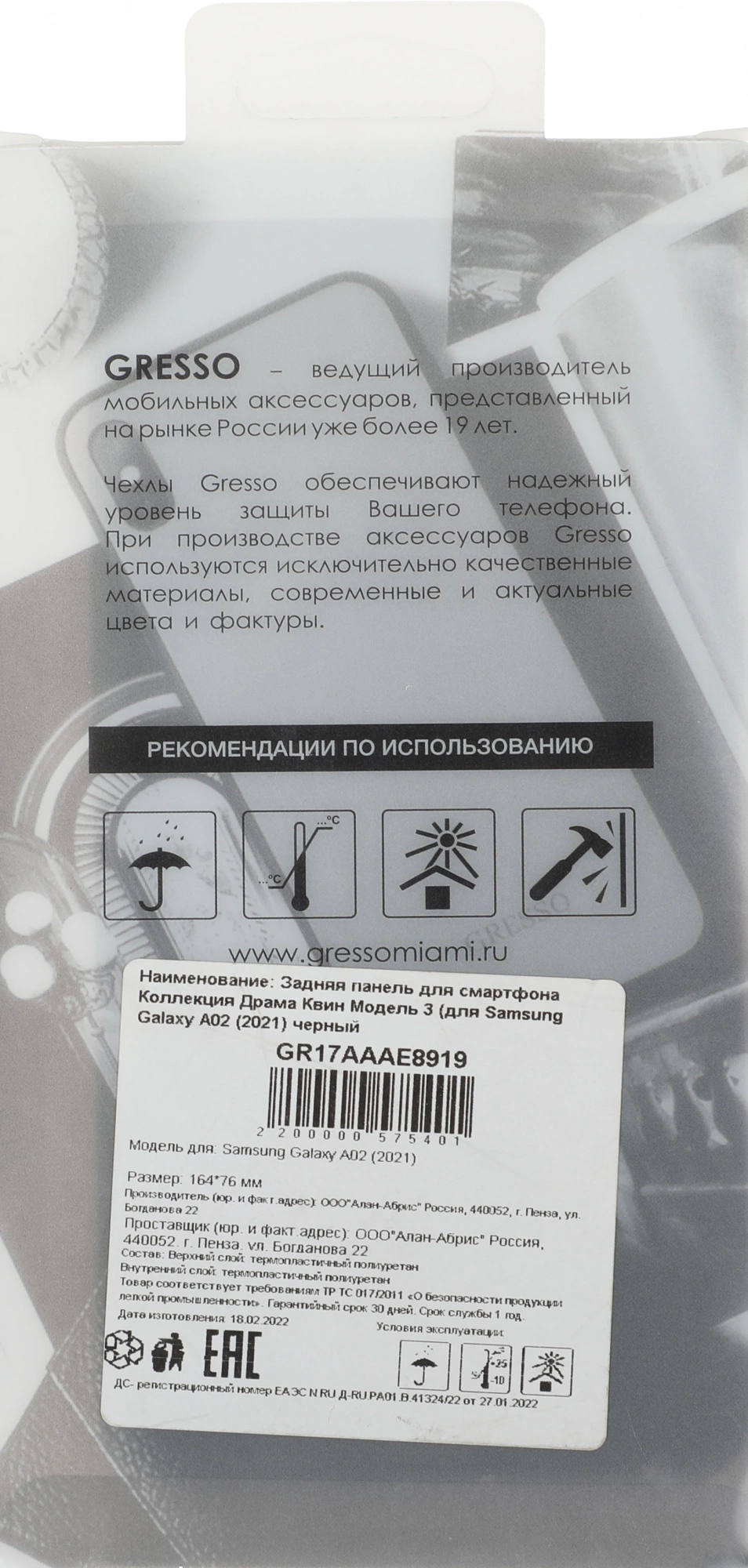 Описание Gresso для Galaxy A02 Meridian [GR17AAAE8919]