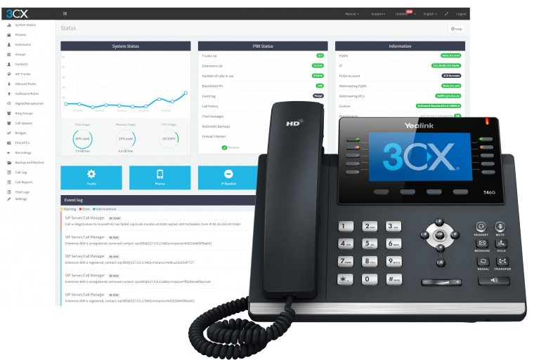 - 3CX – программная АТС, основанная на открытых стандартах, которая работает с распространенными IP-телефонами, SIP-операторами и шлюзами. Представляет собой завершенное решение объединенных коммуникаций, включая веб конференции, индикацию статусов, софтфоны, клиенты для смартфонов и многое другое.