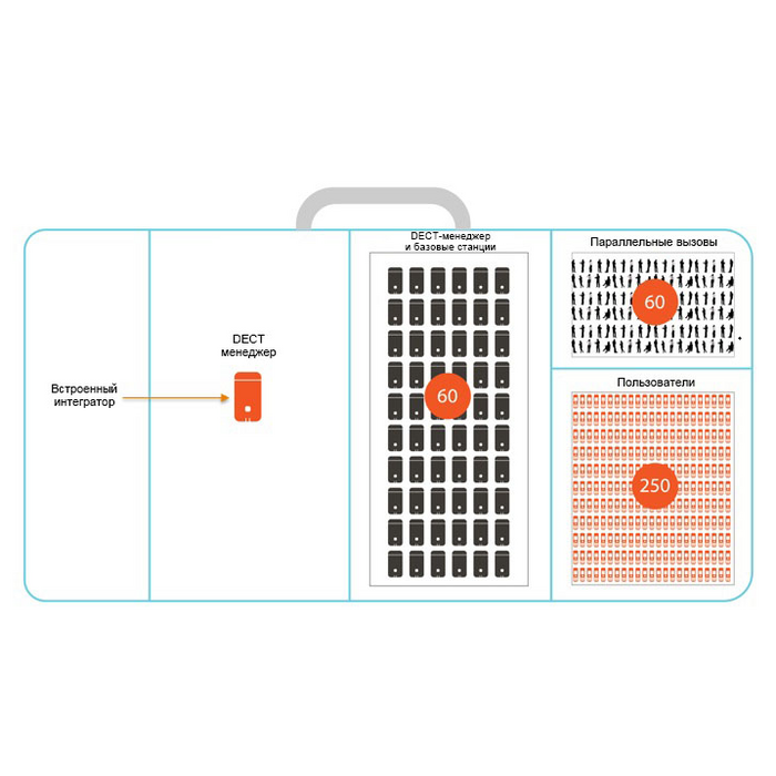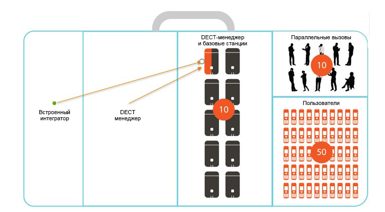 • Поддержка 120 каналов DECT