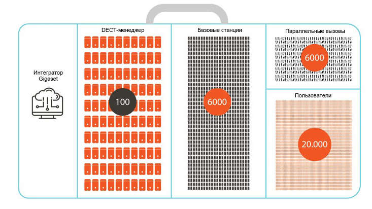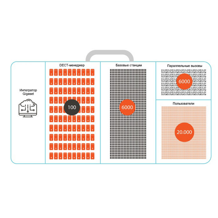 • До 20000 учетных записей (при использовании ПО Gigaset Integrator)