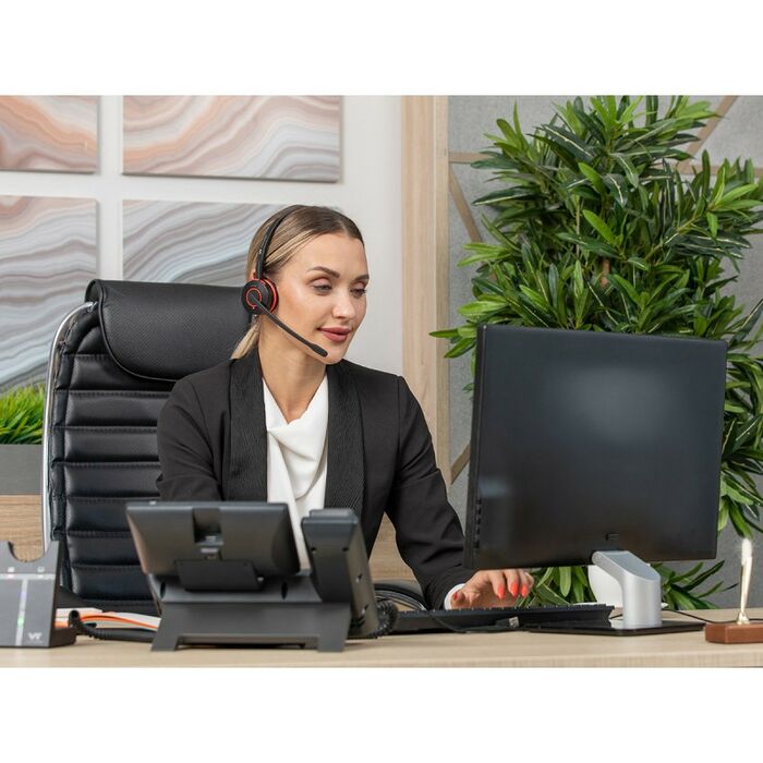 - Гарнитура VT9400 оснащена многофункциональной клавишей для быстрой обработки вызовов. Имеет функцию шумоподавления микрофона и улучшенную функцию защиты органов слуха с технологией SafeTone. Гарнитура работает с любым настольным IP-телефоном. Устройство обеспечивает удаленное управление вызовами на расстоянии до 30 метров от базы в помещении и до 150 метров вне помещения, а ёмкий аккумулятор позволяет использовать гарнитуру в режиме разговора до 8 часов.