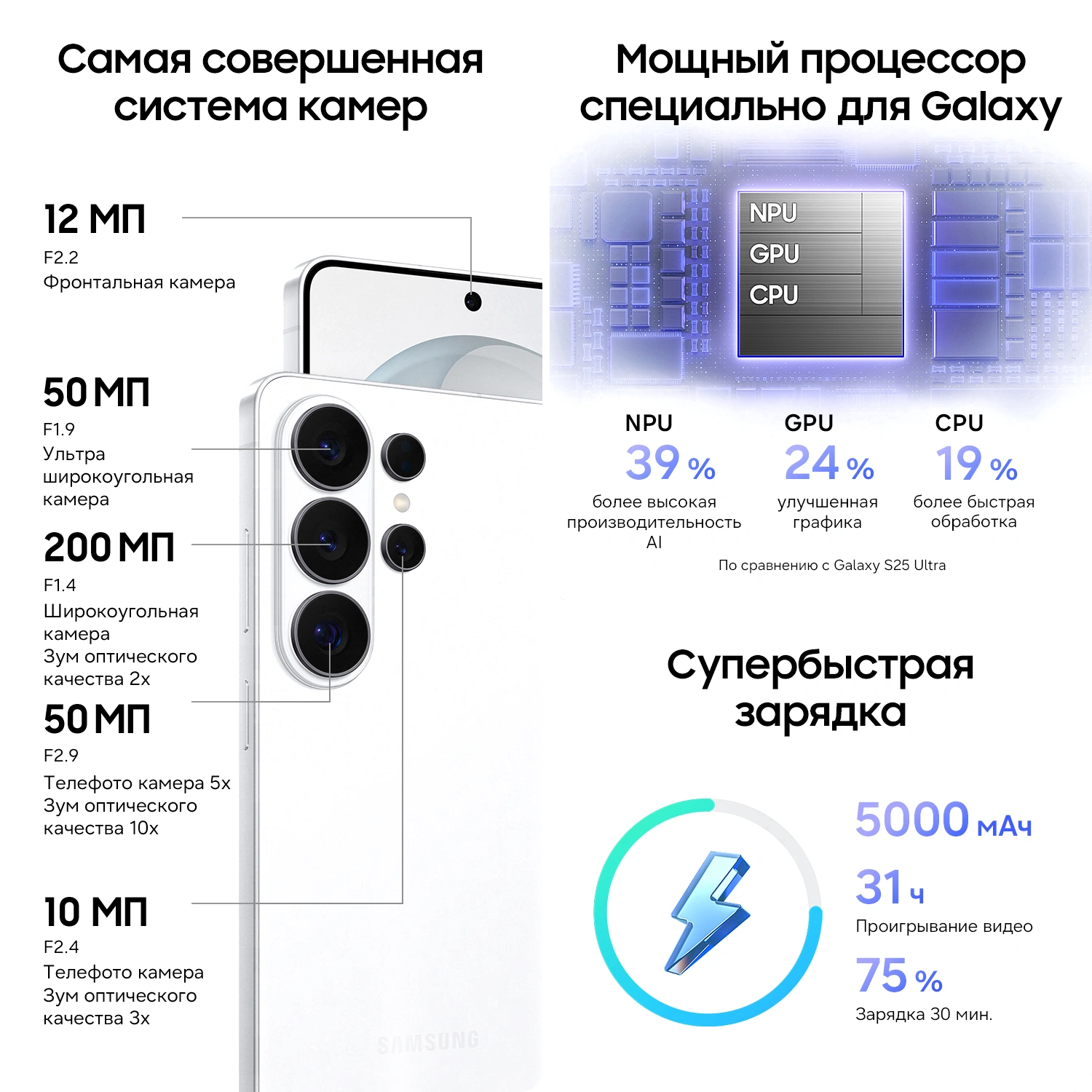 | Особенности | Galaxy Al, Bluetooth с поддержкой слухового аппарата, поддержка S-Pen |