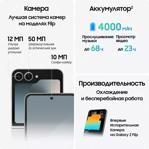 Описание Samsung SM-F741B Galaxy Z Flip 6 256Gb 12Gb серый [SM-F741BZSGCAU]