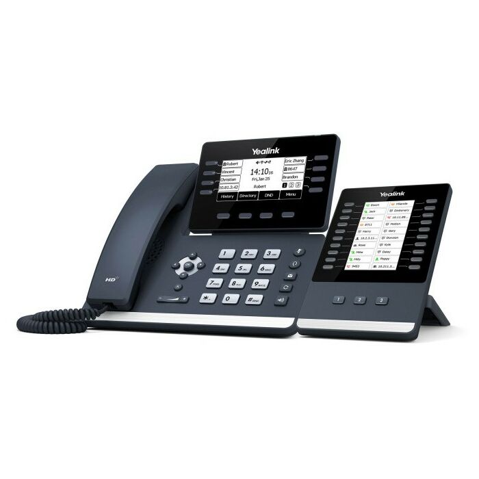 - Удобный пользовательский интерфейс делает работу с IP-телефоном максимально быстрой и простой. Что касается технологии голосового управления Yealink Optima HD, Yealink SIP-T53W улучшает качество звука за счет добавления звукового кодека Opus, что обеспечивает четкую передачу и воспроизведение звука. Использование технологии Gigabit Ethernet, встроенный Bluetooth, WiFi и встроенный порт USB 2.0 значительно улучшили производительность и функционал IP-телефона. Для решения дополнительных задач появилась возможность использования DECT-модуля Yealink DD10K, с помощью которого к IP-телефону Yealink SIP-T53W можно подключить до 4-х DECT-устройств Yealink.