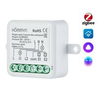 Модуль реле HOMMYN Zigbee 2 канала (с нейтралью) RLZBN02 Двухканальное умное реле позволяет «прокачать» ваши любимые домашние «неумные» двухклавишный...