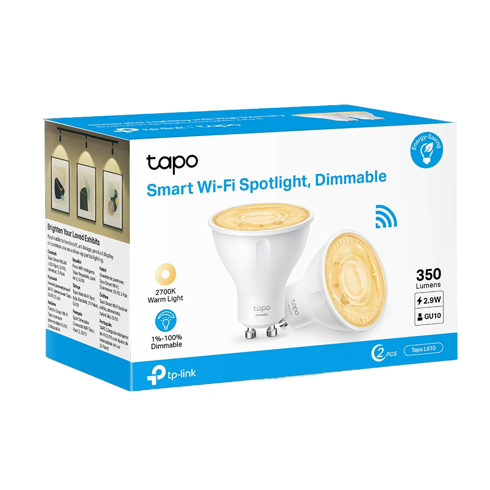 TP-Link Tapo L610 — это компактная умная светодиодная лампа с цоколем GU10, создающая уютный тёплый белый свет. Она идеально подходит для акцентного освещения, подсветки интерьеров, витрин или зоны отдыха. Благодаря поддержке управления через Wi‑Fi и мобильное приложение Tapo, вы получаете полный контроль над освещением без необходимости в хабе.